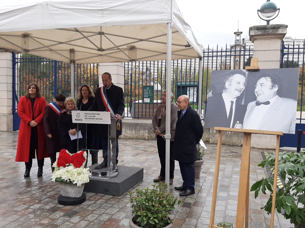 Le jeudi 6 novembre 2025 a eu lieu l’inauguration de l’allée Raymond Devos dans le parc Georges Brassens à Paris, en présence de M. Goujon, maire du 15ème arrondissement, des représentants de la Mairie de Paris, des membres de la Fondation Raymond Devos dont sa présidente Catherine Dolto, des membres de l’ADARD, ainsi que d’amis connus et inconnus. Georges Brassens voulait qu’on lui parle de la pluie et non pas du beau temps. Et bien la pluie s’était même invitée.
